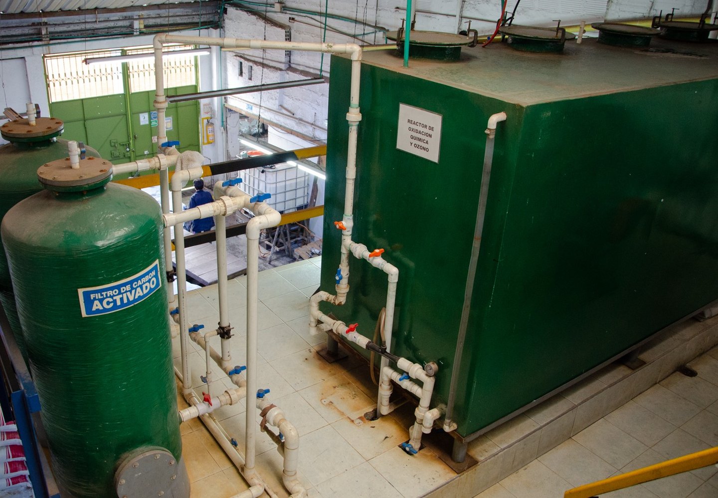 En Procpieles conocémos la importancia del cuidado del ambiente y del agua, es por eso que tenemos una planta de tratamiento que elimina los contaminantes del proceso en varias fases. Durante el primer proceso en los bombos, el agua se dirije a un tamiz y luego a unos tanques especiales para sedimentar lodos, nos aseguramos de tratar los lodos flotantes también y pasar el agua por filtros de arena y un tanque de oxidación para la recirculación del agua usando la técnica de cascada y ozono terminando en el último paso, un filtro de carbón activado.